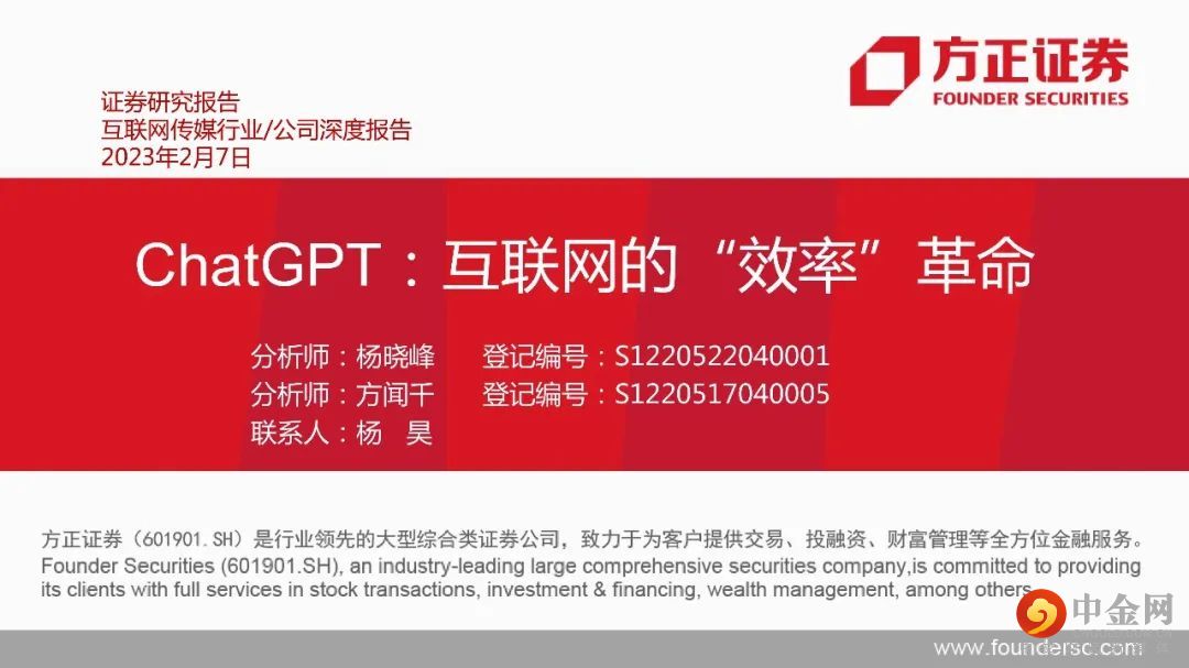 本文来自方正证券研究所于2023年2月8日发布的报告《ChatGPT:互联网的“效率”革命》。