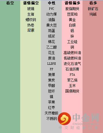 商品期货:黑色建材、农产品(豆菜粕、玉米)谨慎偏多;贵金属、有色金属、原油链条商品中性;