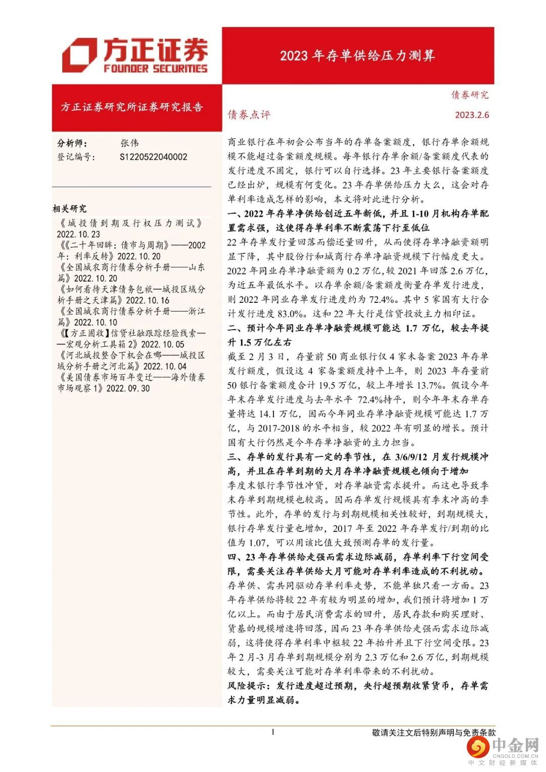 本文来自方正证券研究所于2023年2月7日发布的报告《2023年存单供给压力测算》。