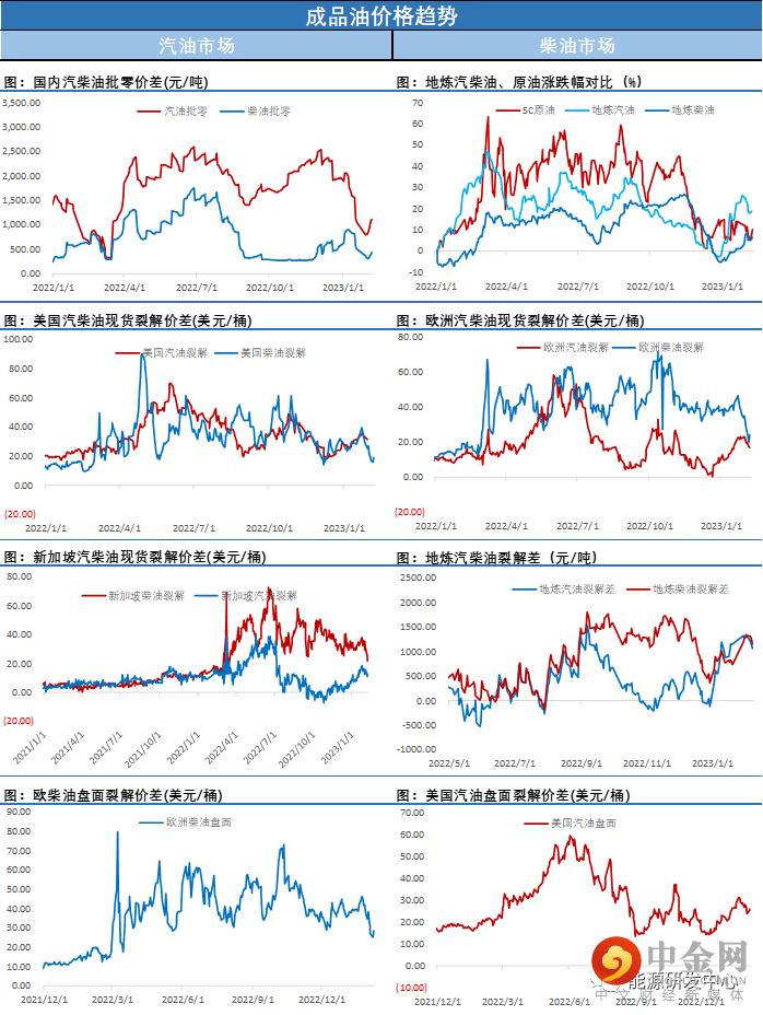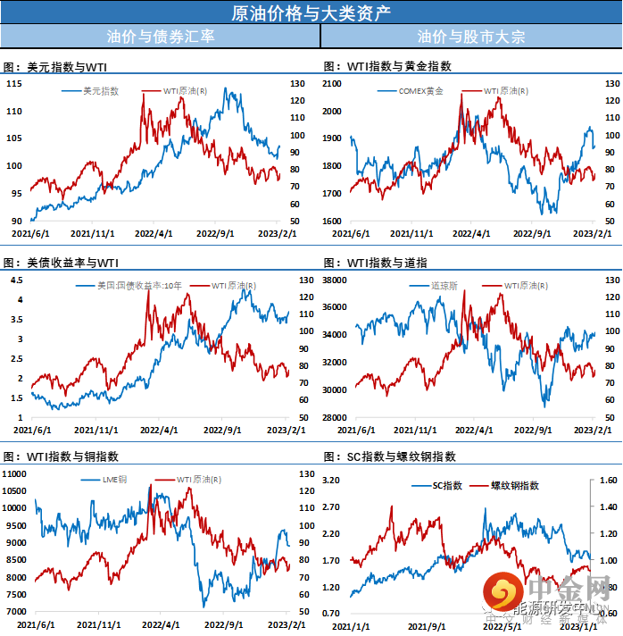 目前原油市场供需层面有些混乱,今年以来美国原油及全口径库存表现持续超预期累库,这对油价形成了压制,并在一定程度冲销了中国需求恢复带来的利多作用。供应层面因地震引发的供应收紧属于短期影响,但也提醒了投资者供应端扰动随时可能刺激油价有超预期表现。而俄罗斯原油产量保持了其顽强的一面,俄罗斯副总理诺瓦克称1月份俄罗斯石油产量为980-990万桶/日,2月份的石油产量与1月份持平,供应受影响程度低于市场预期,俄油过低的销售价格也开始影响到原油市场,压低了油价表现。