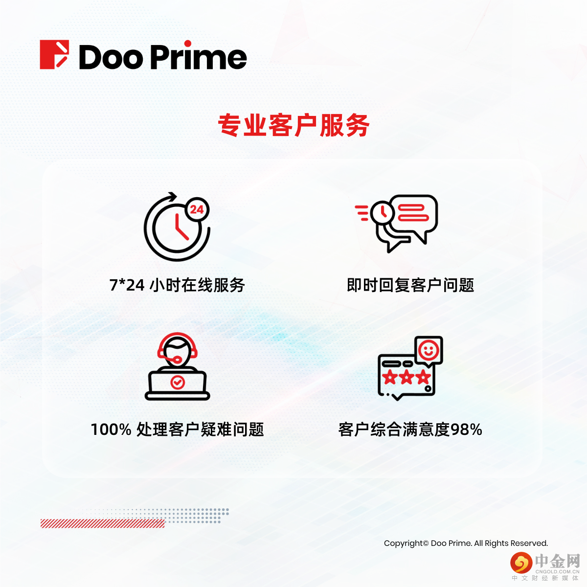 凭借强大的金融科技基础设施、密切的合作伙伴关系、资深的技术团队,Doo Prime 始终为投资者提供安全可靠的交易环境、具有竞争力的交易成本、极速的交易执行通道,在 MT4、MT5、TradingView、Doo Prime InTrade 等多个行业领先的交易终端上提供超过 1 万种交易产品,支持 20 多种不同货币的存取款方式,7*24 小时的多语言客户服务。