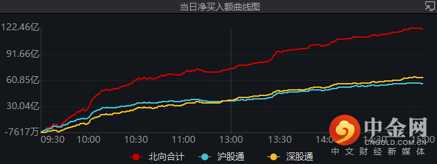 净买入额曲线图来看,北向资金恢复净流入,开盘资金一度呈现流出状态,随后开始反弹,午后资金流入持续。沪股通流入57.07亿元,深股通流入63.94亿元。