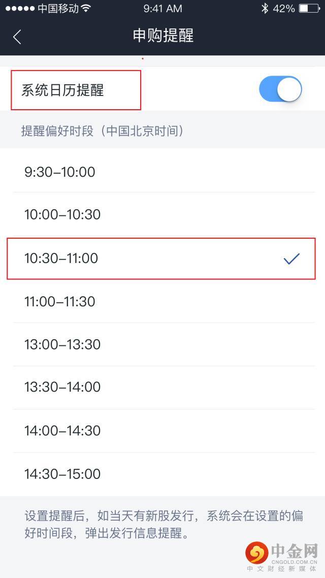 申购提醒:可设置提醒时间,在最合适的时段打新,提高中签几率。