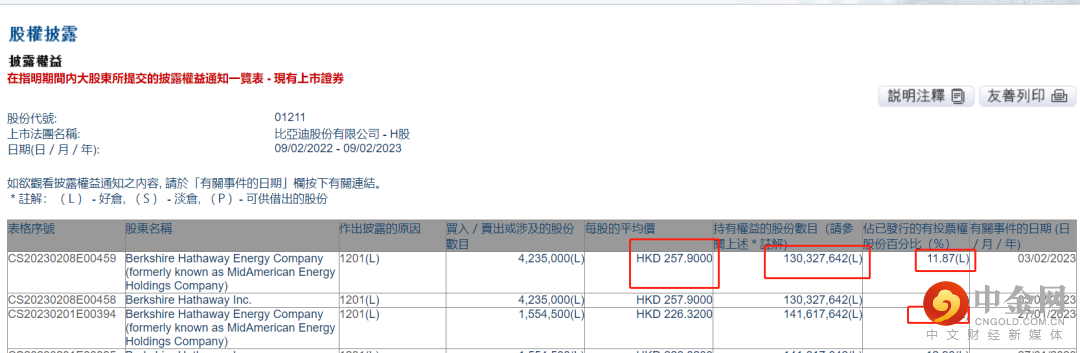 今年1月27日出售了155.45万股比亚迪股份,平均减持价格为每股226.32港元,持股比例降至12.9%。