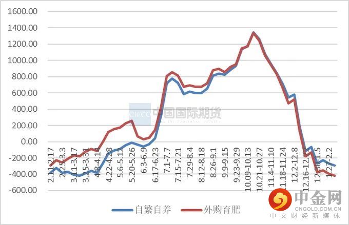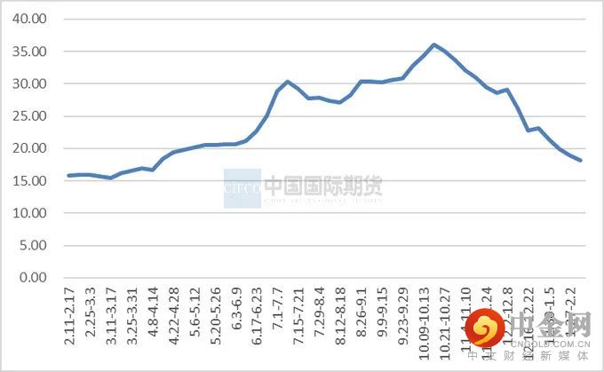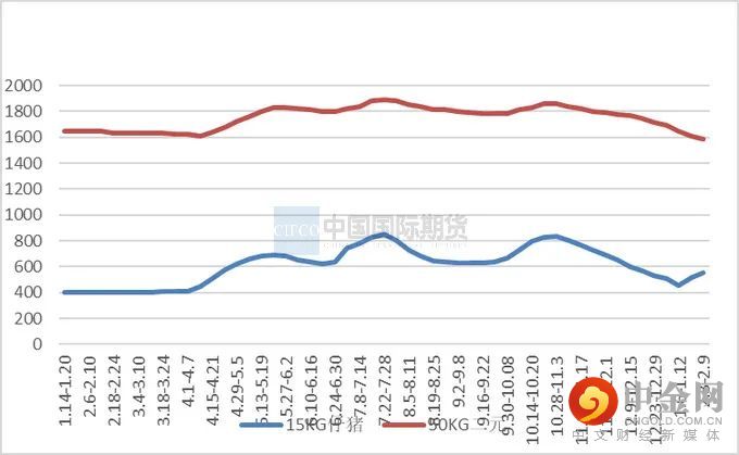 上周主力合约由03合约移至05合约,上周生猪盘面震荡修复前期的跳空缺口。最低点出现在周一15860,最高点出现在周五16580。随着03合约临近交割月,现货弱势带动期货预期较差,03合约依旧利空主导。05合约预期回暖,有望上涨。