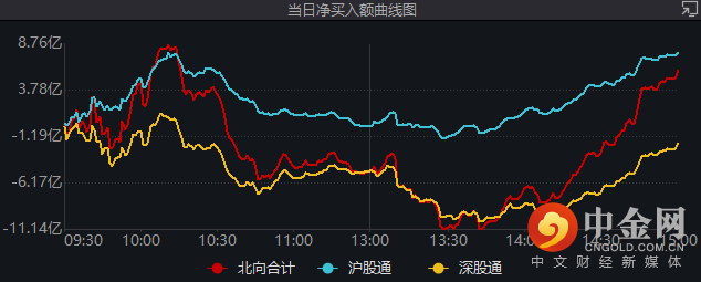 以每日额度余额口径,北向资金截至A股收盘净流入29亿元;以买卖成交额口径,北向资金净买入6亿元。