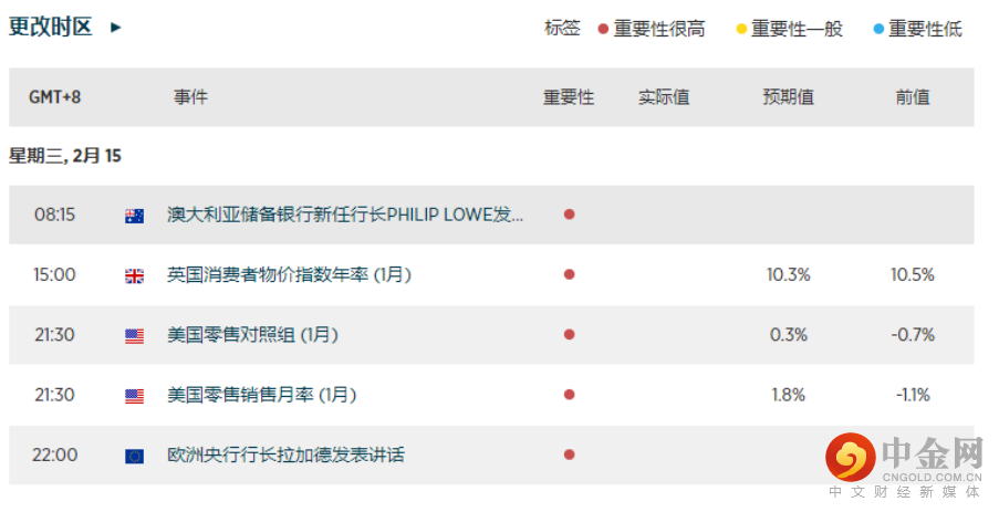英国CPI、美国零售销售。