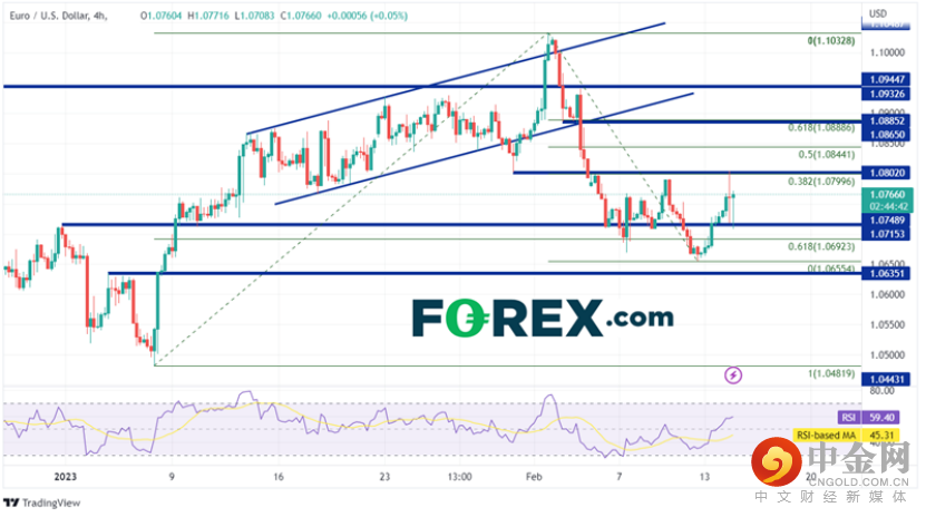 1月美国CPI高于预期,但低于12月数据。由于FOMC会议要到3月22日才会召开,美联储将有更多的通胀数据可供参考。因此,美元目前看来将在区间内震荡。但是,请密切关注支撑位和阻力位。如果价格涨破或跌破这些点位,美元指数和欧元/美元可能会形成走势。
