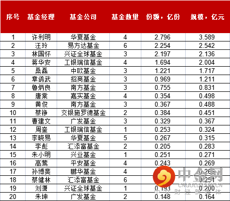 图表2:养老目标基金Y份额规模前20名的基金经理