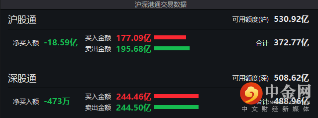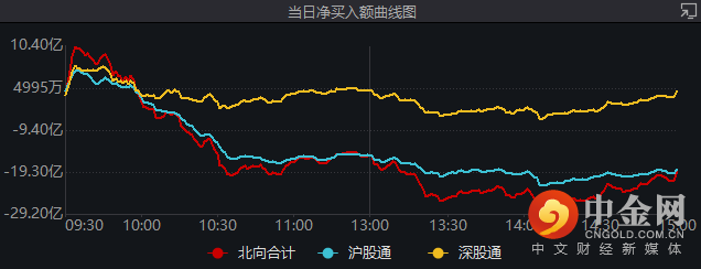 以每日额度余额口径,北向资金截至A股收盘净流入不足1亿元;以买卖成交额口径,北向资金净卖出近19亿元。